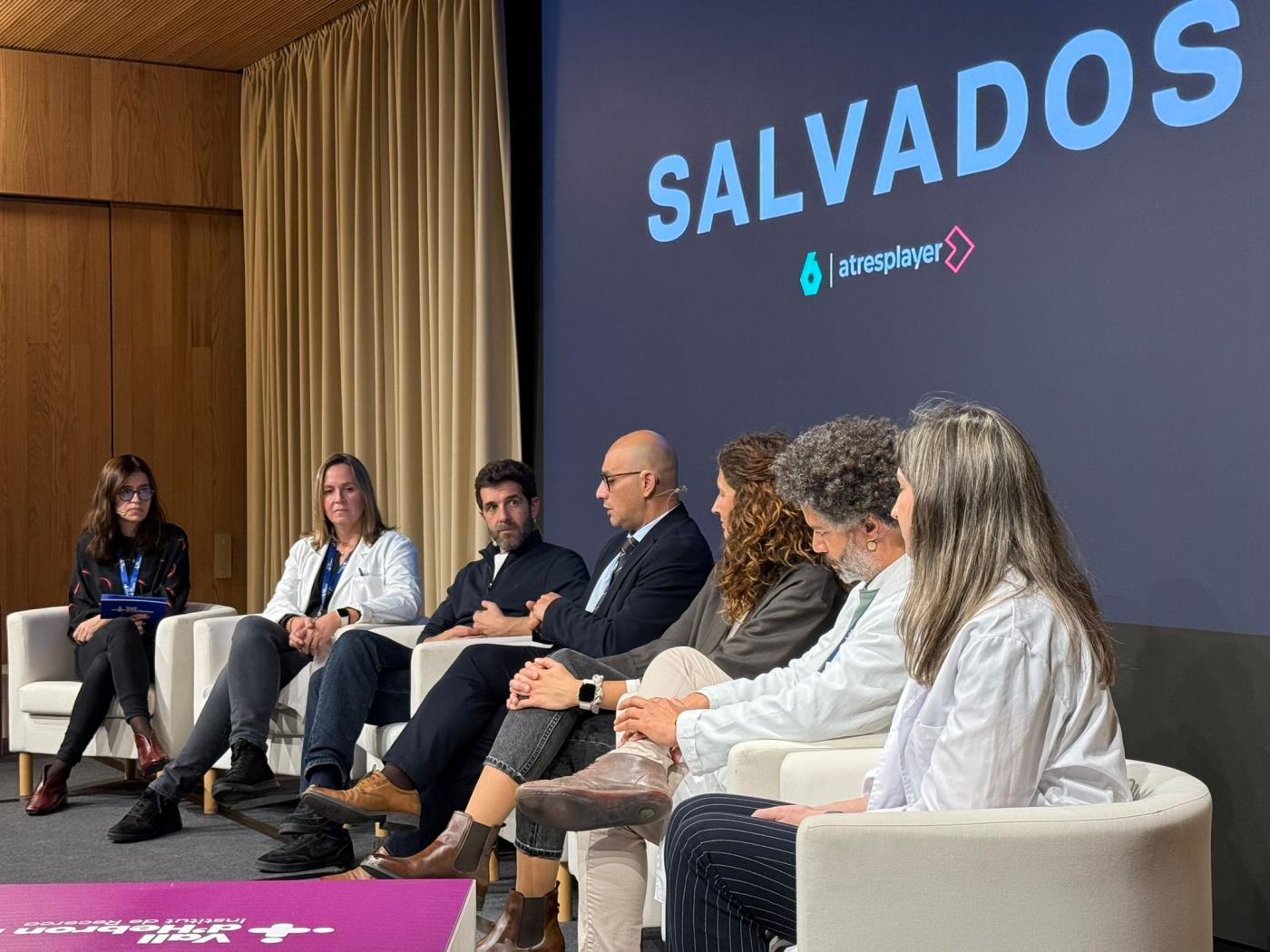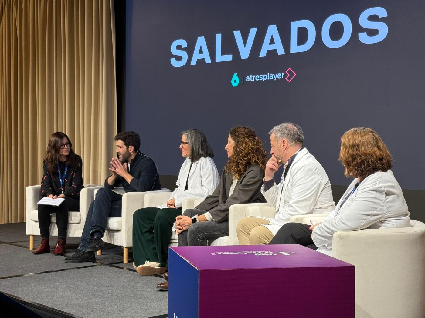 A continuació van pujar a l’escenari els responsables de Cirurgia Toràcica i Trasplantament Pulmonar de Vall d’Hebron, per parlar del procés de trasplantament. Tot i estar al capdavant d’un equip de professionals que lidera el trasplantament de pulmons a l’Estat i comptar amb fites mèdiques com haver realitzat el primer trasplantament pulmonar completament robòtic del món, el Dr. Albert Jaureugui, cap de Servei de Cirurgia Toràcica i Trasplantament Pulmonar, va parlar del respecte que sent cada cop que afronta un nou procediment quirúrgic. La Dra. Leticia Otero, resident de segon any, va explicar com ha crescut com a metgessa des del maig passat, quan l’equip de Salvados va fer la seva immersió a Vall d’Hebron per rodar aquest capítol. El Dr. Joel Rosado, cirurgià de Cirurgia Toràcica i Trasplantament Pulmonar, va explicar què malgrat l’impacte personal que suposa viure pendent del telèfon per saber quan s’activa un trasplantament, i tenir dues hores per organitzar-se i anar on calgui –ja sigui en avió com en l’episodi de Salvados, al mateix Vall d’Hebron en el seu vehicle o en transport terrestre a un altre hospital– el fet de salvar vides compensa en una feina molt vocacional. Per part seva, la Dra. Patrícia Ciurana, anestesiòloga de l’equip de cirurgia toràcica i trasplantament pulmonar, va celebrar que Salvados hagi contribuït a donar a conèixer una especialitat transversal que està present en tots els procediments quirúrgics, malgrat que sovint no és gaire coneguda per la població general.