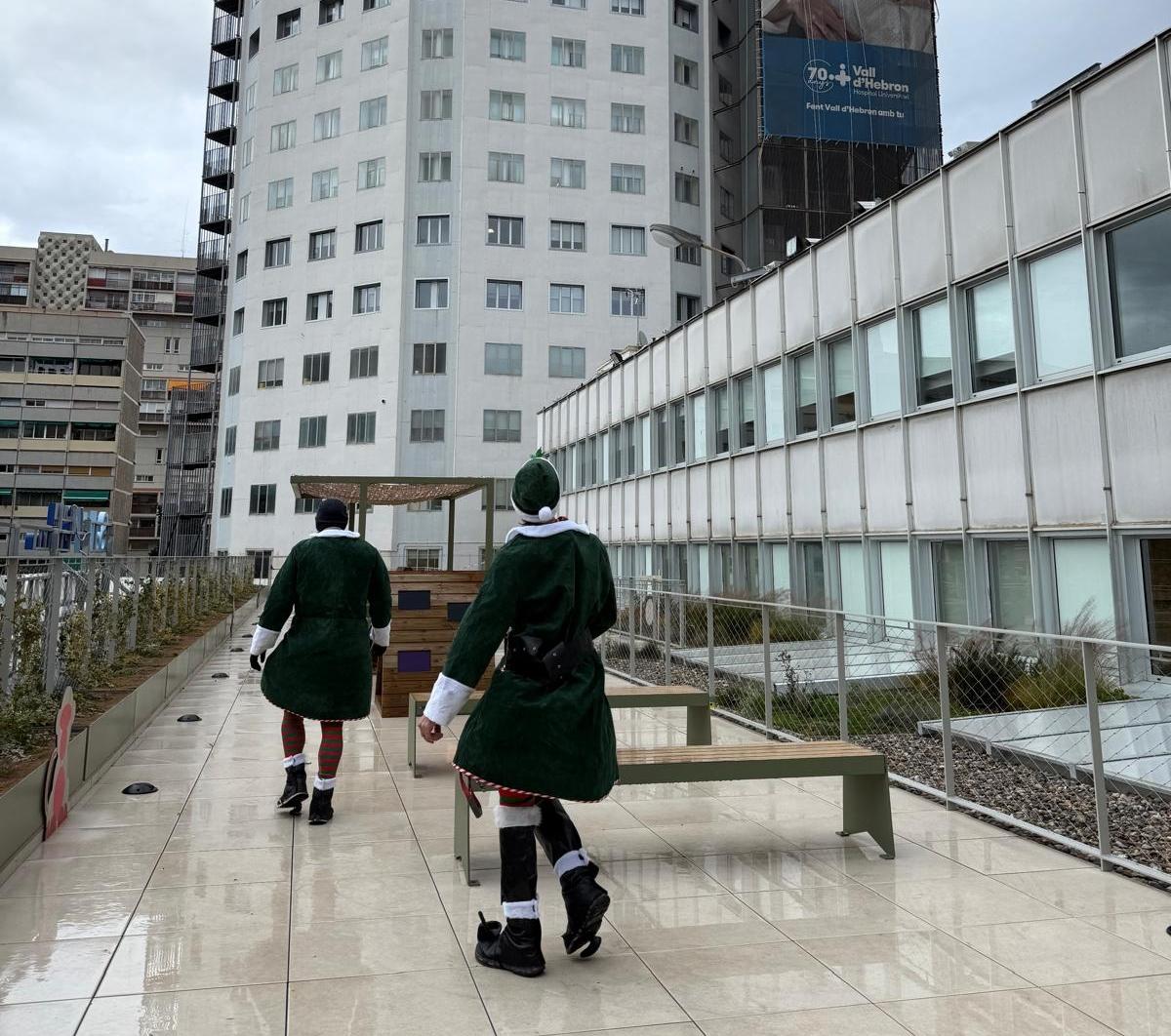 El Pare Noel i els seus elfs han fet avui el tradicional descens per les façanes de l’Hospital Infantil i de la Dona i de l'Hospital General, i han visitat als pacients hospitalitzats, que han rebut una estrella solidària en el marc de la campanya 'Aquest Nadal, omplim Vall d'Hebron d'estrelles’ de la mà del voluntariat de l'Hospital: les estrelles tenen el doble objectiu de portar l’esperit de Nadal als pacients i invertir en l’hospital amable. Els infants també han rebut un nino d’amigurumi de Llanetes amb companyia. Ja divendres passat, els més menuts van poder fer cagar el tió a totes les plantes de l’Hospital Infantil.