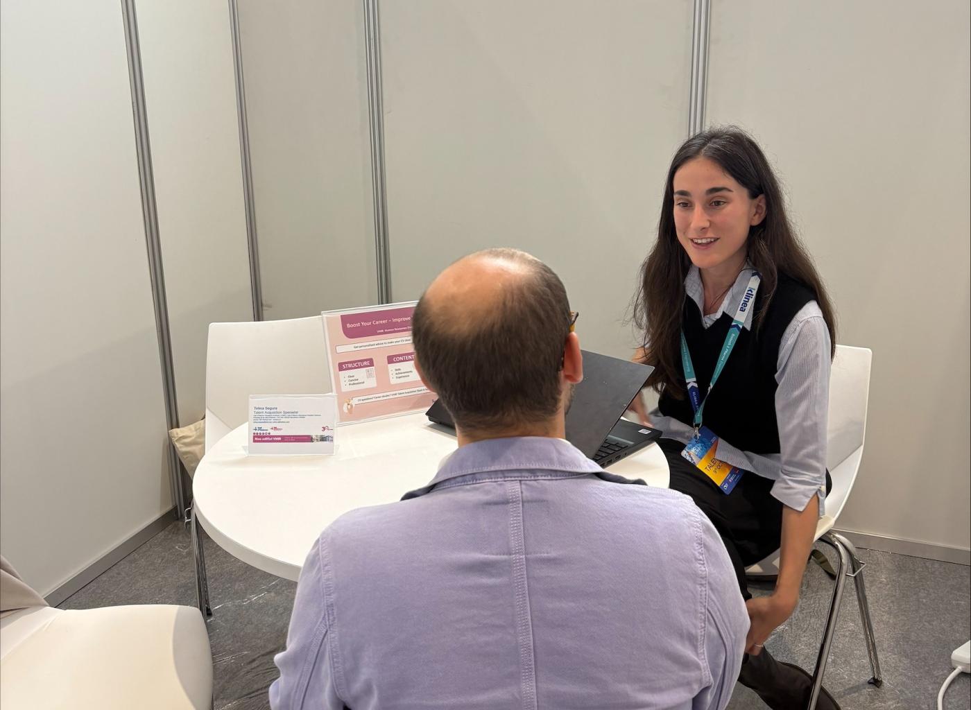 Finalment, el dia 9 ha tingut lloc el Talent Day, un espai interactiu destinat a posar en contacte empreses reclutadores amb professionals del sector. Durant aquesta jornada s’ha facilitat la trobada entre les principals companyies que busquen talent i els candidats. Estela Villanueva i Telma Segura, cap i tècnica de la Unitat d’Atracció i Captació de Talent del VHIR, han fet entrevistes presencials de 20 minuts a les persones interessades en les vacants del VHIR. A més, es va oferir orientació al públic en tècniques per optimitzar el seu currículum i enfortit el seu desenvolupament professional. Com a part d’aquesta iniciativa, van oferir l’oportunitat de completar tests psicomètrics de reconegut prestigi i van oferir una interpretació professional dels resultats, cosa que representa una eina clau per aprofundir en l’autoconeixement i destacar en les vacants que millor s’ajustin al perfil de cada persona.
