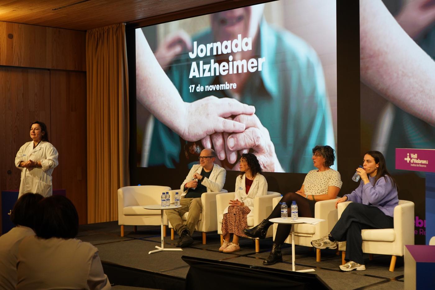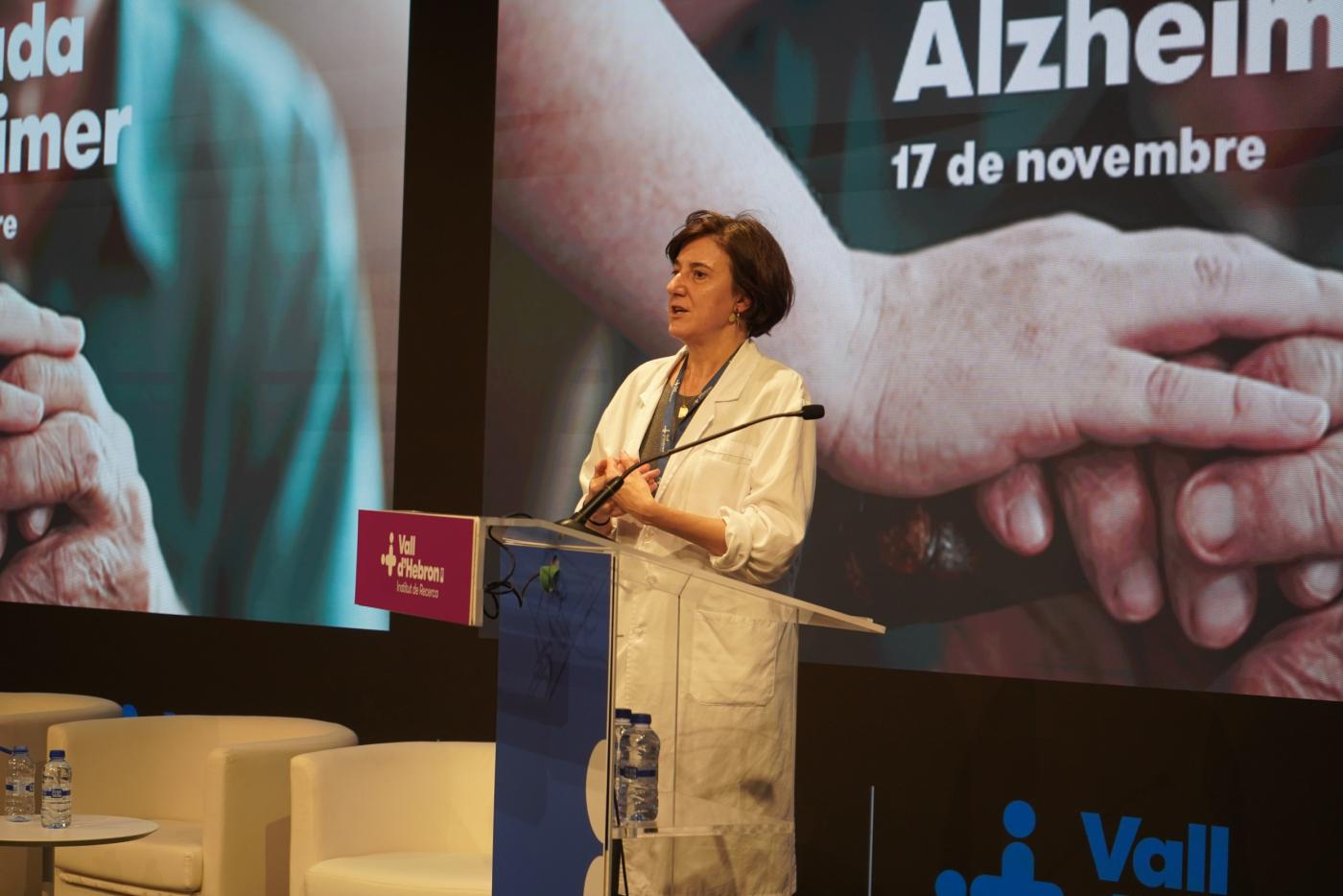 El segon bloc, dedicat a la recerca científica, va comptar amb la participació de la Dra. Mar Hernández Guillamon, investigadora principal del grup de Malalties Neurovasculars del VHIR. Va destacar com els estudis bàsics al laboratori contribueixen a comprendre millor els mecanismes de la malaltia i a obrir noves vies terapèutiques per als pacients. Entre les preguntes que vol respondre la recerca estan entendre per què es perden les connexions entre neurones, què passa amb les proteïnes que s’acumulen al cervell, per què unes persones tenen més risc que altres, com podem diagnosticar-la abans que apareguin els símptomes o com endarrerir-la.