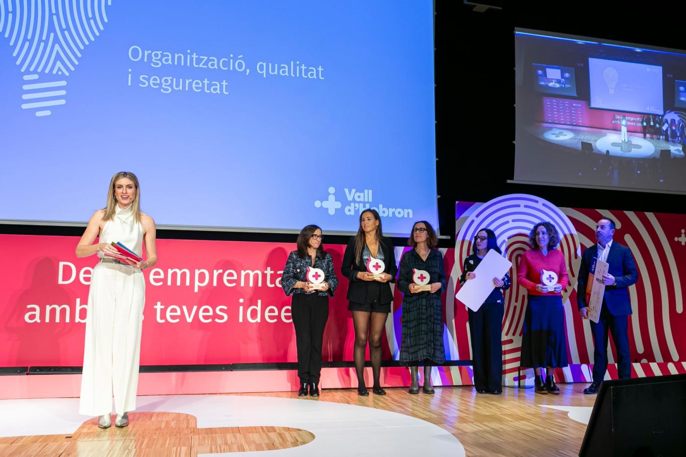 Cuatro profesionales de Vall d’Hebron entregaron el premio al ganador de cada categoría, acompañadas de representantes de los partners: Soledad Romea, directora de Calidad, Procesos e Innovación, entregó el premio en la categoría Organización, calidad y seguridad; y Anna Sala, jefa de la Unidad de Innovación, en la categoría Sostenibilidad y responsabilidad social, junto con Virginia Martín Torres, PhD, Value Based Healthcare Innovation Head de Novo Nordisk Pharma. Además, Maria José Abadías, directora Asistencial, entregó el galardón en la categoría Talento, desarrollo y bienestar profesional; y Mª Àngels Barba, directora de Enfermería, en la categoría Atención centrada en el paciente y la familia, junto con Francesc Pares, National Market Access Lead de Alexion, AstraZeneca Rare Disease. “En las últimas ediciones, la IA ha impregnado las propuestas del Jo Innovo, así como la digitalización y la mejora de la trazabilidad de los procesos clínicos o la gestión de datos mediante nuevas tecnologías. El Jo Innovo ya es un certamen consolidado, y nuestros profesionales tienen interiorizado detectar cuestiones que se pueden mejorar y han encontrado soluciones eficientes e imaginativas”, expone Anna Sala.