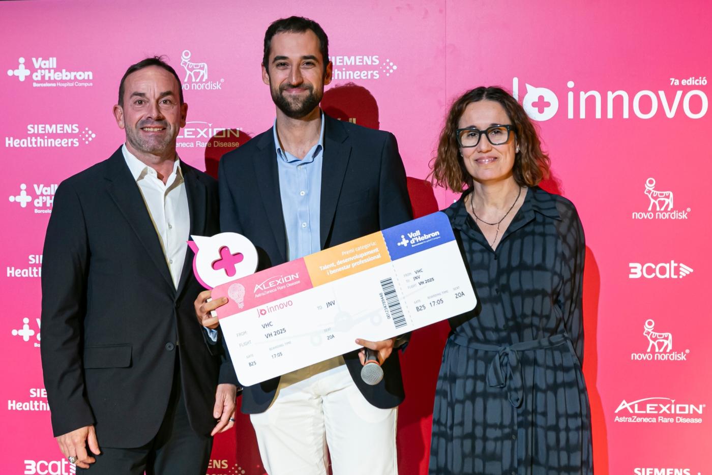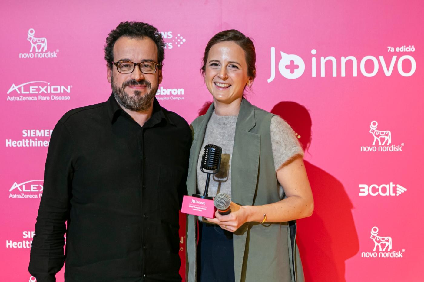 La gala del Jo Innovo, celebrada en el CosmoCaixa y presentada por la periodista de 3Cat Maria Xinxó, supone la culminación de la quinta Semana de la Innovación, patrocinada por Siemens Healthineers y con el apoyo de Alexion, AstraZeneca Rare Disease y Novo Nordisk, y la colaboración de Pfizer, Boehringer Ingelheim, Roche, Gilead, Serveo y MSD. Los asistentes a la gala también votaron entre los finalistas de cada categoría al ganador como mejor comunicador. La Dra. Andrea Caballero, del Servicio de Bioquímica Clínica, ganó en la categoría Sostenibilidad y Responsabilidad Social con su proyecto Lab-on. Completan el palmarés Arnau Monforte, del Servicio de Enfermedades Infecciosas, con Simulación en Enfermedades Infecciosas (SIMI), en la categoría Talento, desarrollo y bienestar profesional; y Juan León, del Servicio de Nefrología, con su proyecto Adherence, para mejorar la gestión hospitalaria con IA generativa, en la categoría Atención centrada en el paciente y la familia. Los ganadores de cada categoría obtuvieron un viaje para conocer el ecosistema innovador de un hospital de la EUHA y formación en Innovación. Blanca Oliver, médica residente del Servicio de Cirugía Pediátrica, fue distinguida como mejor comunicadora del Jo Innovo y recibió una estatuilla en forma de micrófono y una experiencia comunicadora en 3Cat de la mano de Fran Garcia, director de Comunicación, Estrategia Corporativa y Atención Ciudadana de Vall d’Hebron.