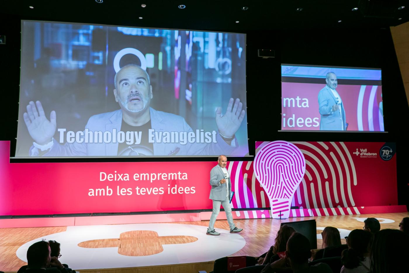 En esta edición, la gala contó con momentos muy especiales. Javier Sirvent, evangelista tecnológico y experto en alta tecnología, ingeniería electrónica y física aplicada a la innovación, amplió la perspectiva sobre Inteligencia Artificial de los asistentes del Jo Innovo. Los dos ganadores de ediciones anteriores del Jo Innovo, el Dr. Marc Mendo, médico residente del Servicio de Anestesiología, Reanimación y Tratamiento del Dolor (ganador de la edición 2023), y el informático Josué Camps, ganador del último Jo Innovo con InformaTIC, subieron al escenario para explicar cómo han evolucionado sus ideas, que el concurso ayudó a convertir en realidad: una app diseñada para agilizar el flujo de trabajo durante situaciones de parada cardíaca y un asistente virtual con IA generativa, respectivamente. Cristina Salvador, experta en comunicación, directora y fundadora de Both, People & Comms, también ofreció las claves para fidelizar a las instituciones a la generación Z, acompañada de Xènia Molina, que habló en nombre de esta generación.