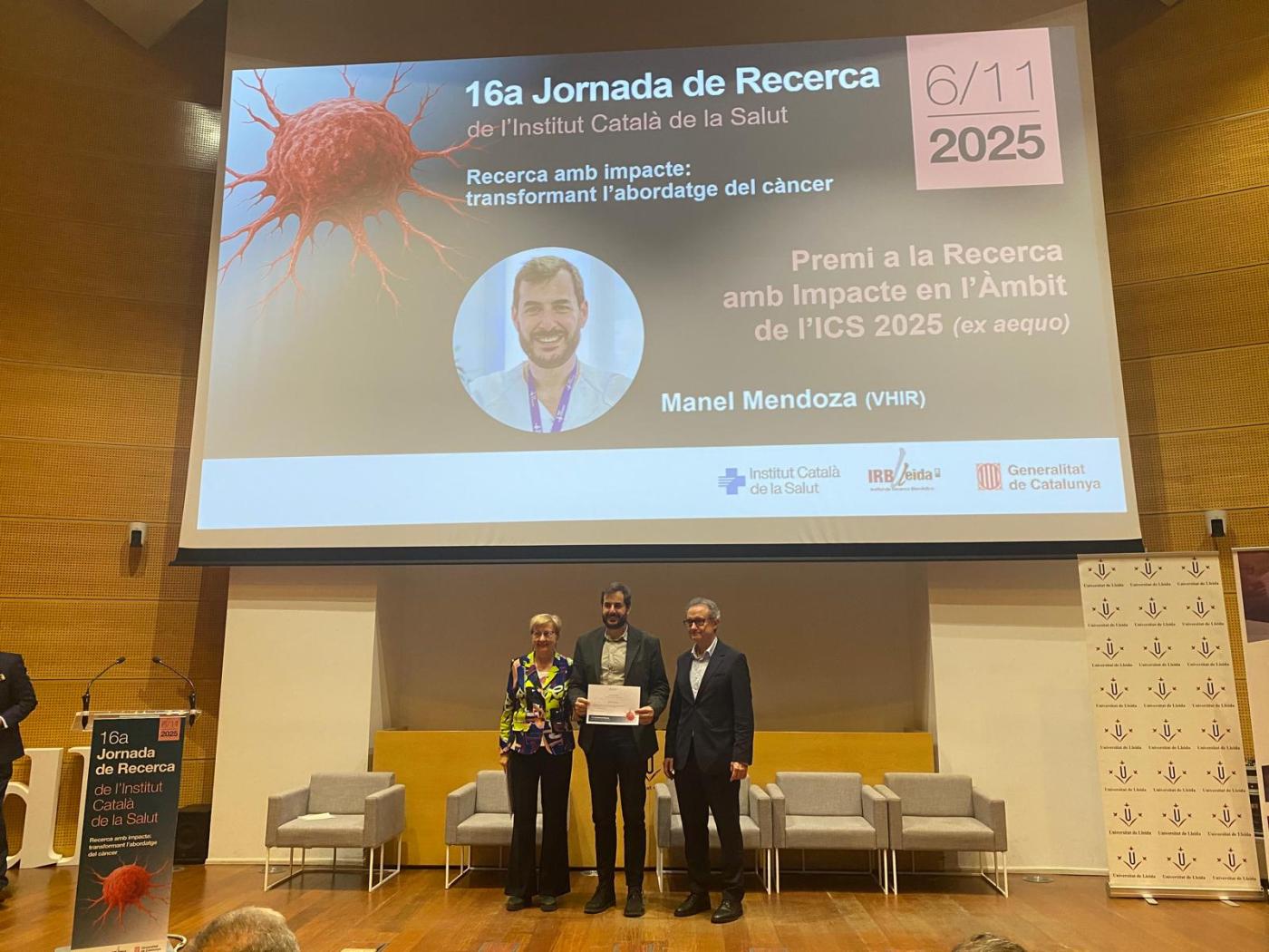 El 6 de noviembre, el Instituto Catalán de la Salud (ICS) celebró la 16ª Jornada de Investigación bajo el lema ‘Investigación con impacto: transformando el abordaje del cáncer’. En el marco del encuentro, se entregaron los Premios de Investigación del ICS, en los que profesionales del Campus Vall d'Hebron han recibido cuatro galardones.