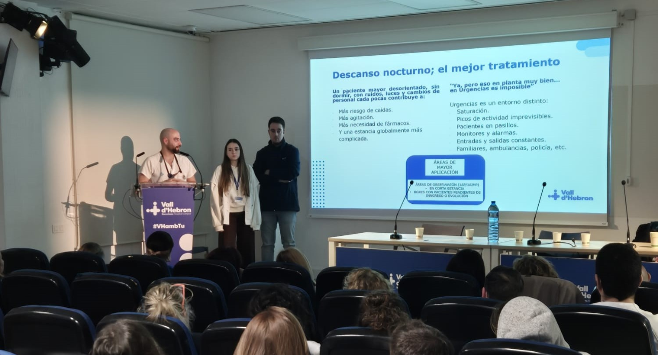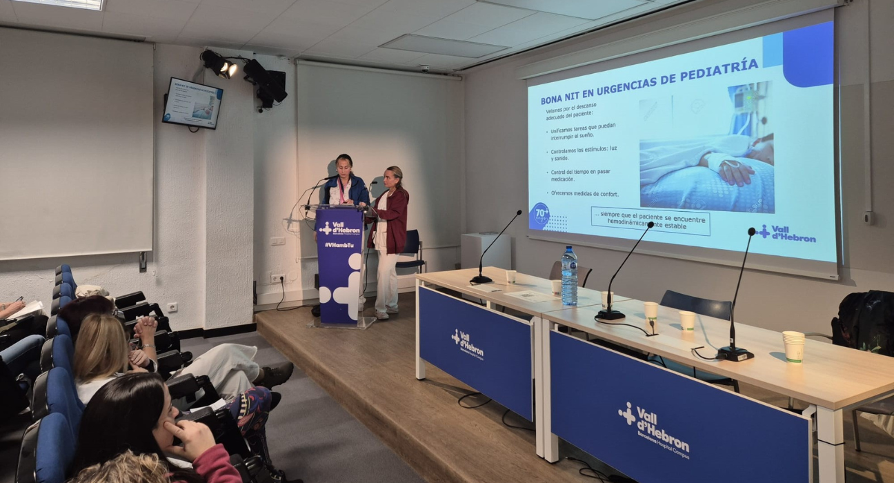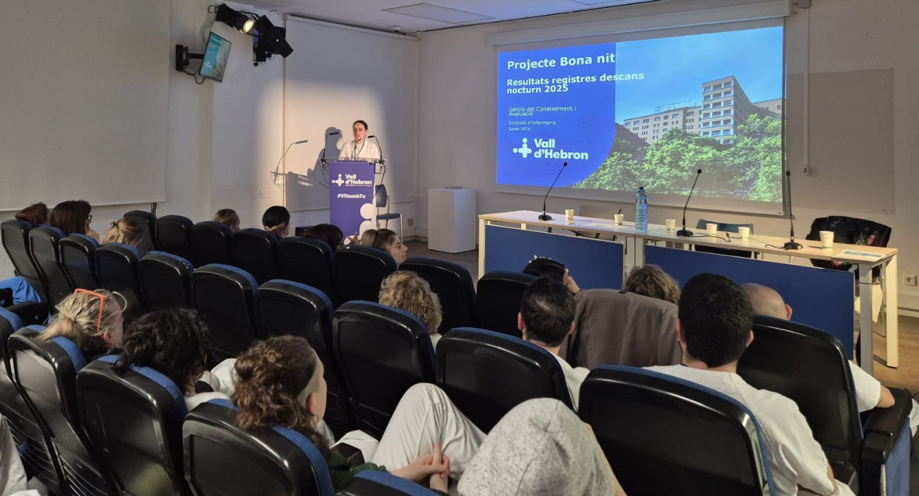 Durante la Jornada nocturna celebrada recientemente para poner en común los resultados y objetivos del programa ‘Bona Nit Vall d’Hebron’, una de las principales conclusiones a las que se ha llegado es que un 80% de los pacientes hospitalizados en planta durmieron de media más de 6 horas cada noche, según registros de evaluación del 2025 sustentados en casi cuatro mil respuestas obtenidas por los referentes Bona Nit a partir de auditorías de los registros realizados por los profesionales mediante cuestionario. Un porcentaje muy significativo que ha sido posible gracias a la labor llevada a cabo desde el inicio del programa y en base a valoraciones recogidas por los profesionales de enfermería sobre las características del sueño, lo que permite personalizar medidas para optimitzar el descanso durante la noche.