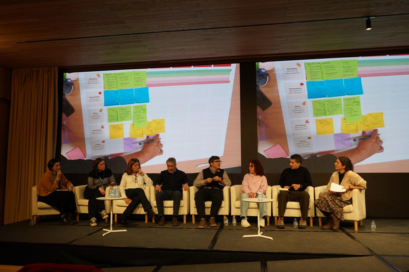 La segunda mesa redonda, La voz de la comunidad, también dinamizada por Sara Mas, contó con la participación de la Dra. Ariadna Laguna; Sara Belmonte, enfermera de práctica avanzada del Servicio de Neurología del Hospital Universitari Vall d’Hebron y miembro del grupo de Enfermedades Neurodegenerativas del VHIR; Juanjo Masoliver, Artur Sasot, Emilia Durán, Miriam Gullo y Matias Masoliver. Las personas participantes debatieron sobre el significado de trabajar conjuntamente en la comunidad de práctica, el valor de estos espacios para la investigación y el bienestar, la transformación de la relación entre las personas investigadoras y las personas con Parkinson, y el papel de los artefactos artísticos como herramienta para expresar, conectar y generar nuevas comprensiones.